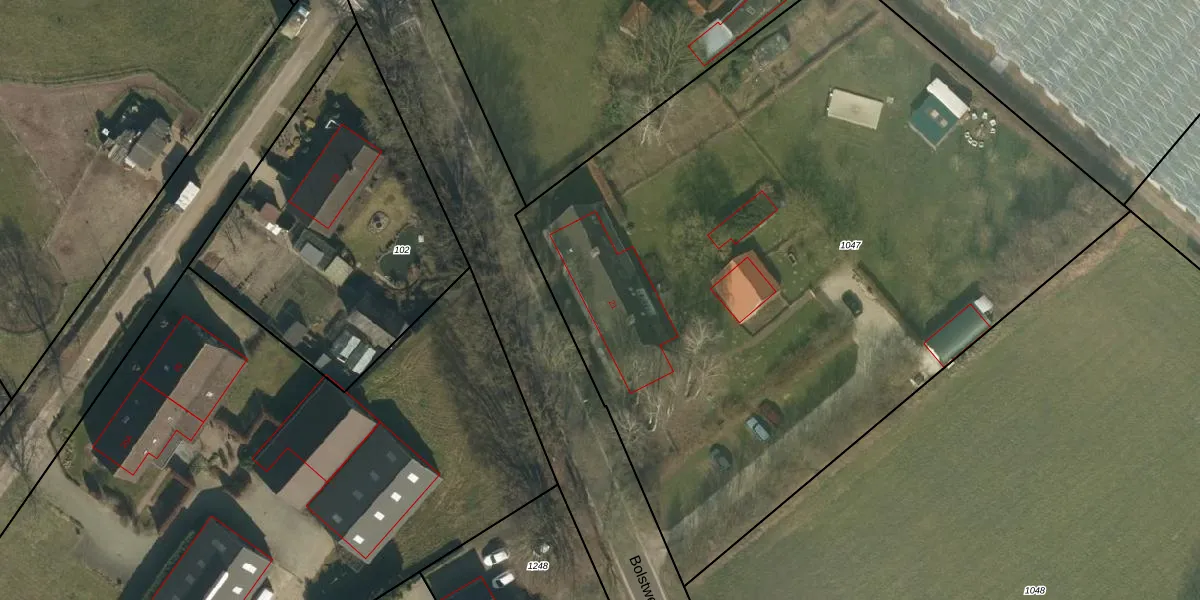 Bolstweg 21 is gelegen op kadastraal perceel ERP00R1047. Deze kadastrale aanduiding is uniek en wordt gebruikt door het Kadaster om eigendomsrechten en andere zakelijke rechten vast te leggen. Het perceel maakt onderdeel uit van de kadastrale gemeente Erp.