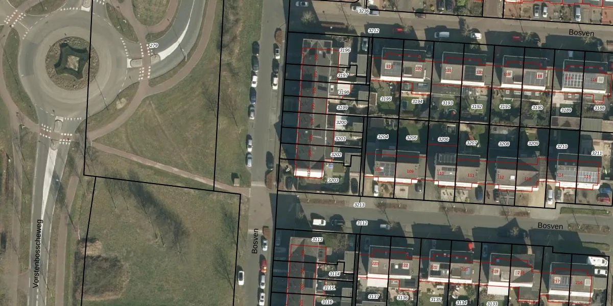 Het perceel waarop Bosven 106 staat heeft een oppervlakte van 132 m². Dit is een middelgroot perceel. De perceeloppervlakte wordt geregistreerd door het Kadaster. Gedetailleerde informatie over de maten van dit perceel kunt u vinden in het rapport Kadastrale kaart met maatvoering van Bosven 106.