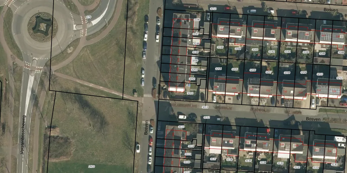 Het perceel waarop Bosven 107 staat heeft een oppervlakte van 285 m². Dit is een middelgroot perceel. De perceeloppervlakte wordt geregistreerd door het Kadaster. Gedetailleerde informatie over de maten van dit perceel kunt u vinden in het rapport Kadastrale kaart met maatvoering van Bosven 107.