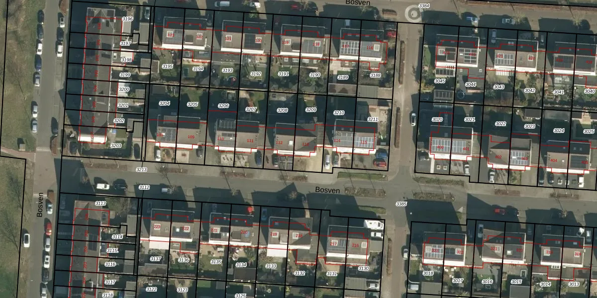 Het perceel waarop Bosven 113 staat heeft een oppervlakte van 257 m². Dit is een middelgroot perceel. De perceeloppervlakte wordt geregistreerd door het Kadaster. Gedetailleerde informatie over de maten van dit perceel kunt u vinden in het rapport Kadastrale kaart met maatvoering van Bosven 113.