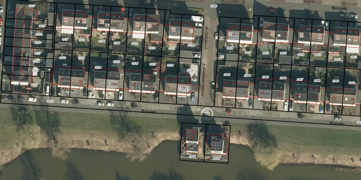 Het perceel waarop Bosven 215 staat heeft een oppervlakte van 312 m². Dit is een groot perceel. De perceeloppervlakte wordt geregistreerd door het Kadaster. Gedetailleerde informatie over de maten van dit perceel kunt u vinden in het rapport Kadastrale kaart met maatvoering van Bosven 215.