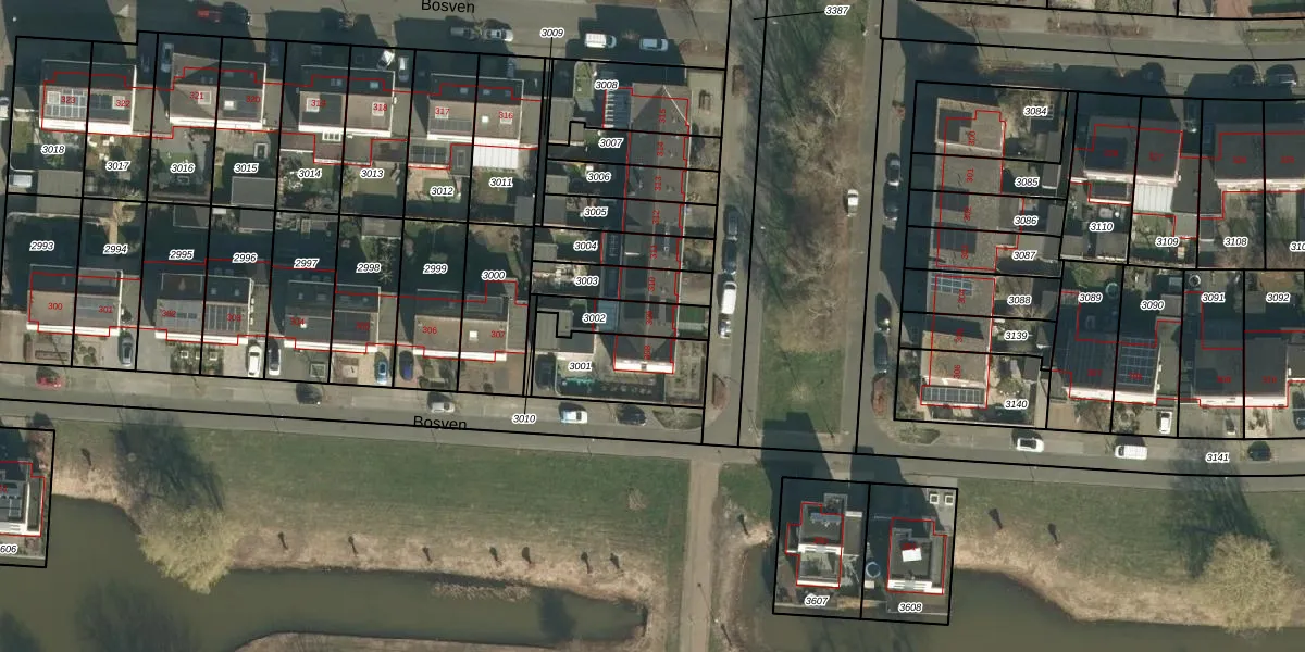 Het perceel waarop Bosven 309 staat heeft een oppervlakte van 132 m². Dit is een middelgroot perceel. De perceeloppervlakte wordt geregistreerd door het Kadaster. Gedetailleerde informatie over de maten van dit perceel kunt u vinden in het rapport Kadastrale kaart met maatvoering van Bosven 309.