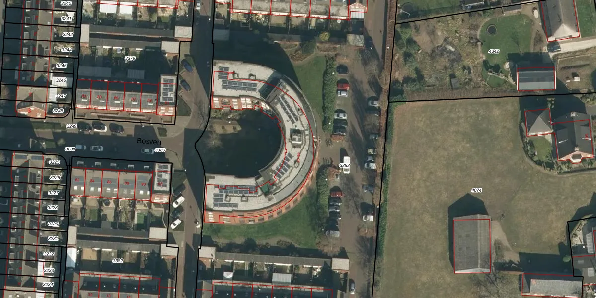 Het perceel waarop Bosven 32 staat heeft een oppervlakte van 7536 m². Dit is een zeer groot perceel. De perceeloppervlakte wordt geregistreerd door het Kadaster. Gedetailleerde informatie over de maten van dit perceel kunt u vinden in het rapport Kadastrale kaart met maatvoering van Bosven 32.