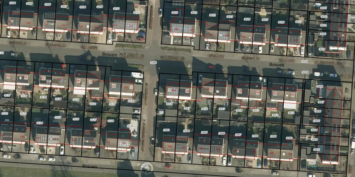 Het perceel waarop Bosven 323 staat heeft een oppervlakte van 282 m². Dit is een middelgroot perceel. De perceeloppervlakte wordt geregistreerd door het Kadaster. Gedetailleerde informatie over de maten van dit perceel kunt u vinden in het rapport Kadastrale kaart met maatvoering van Bosven 323.
