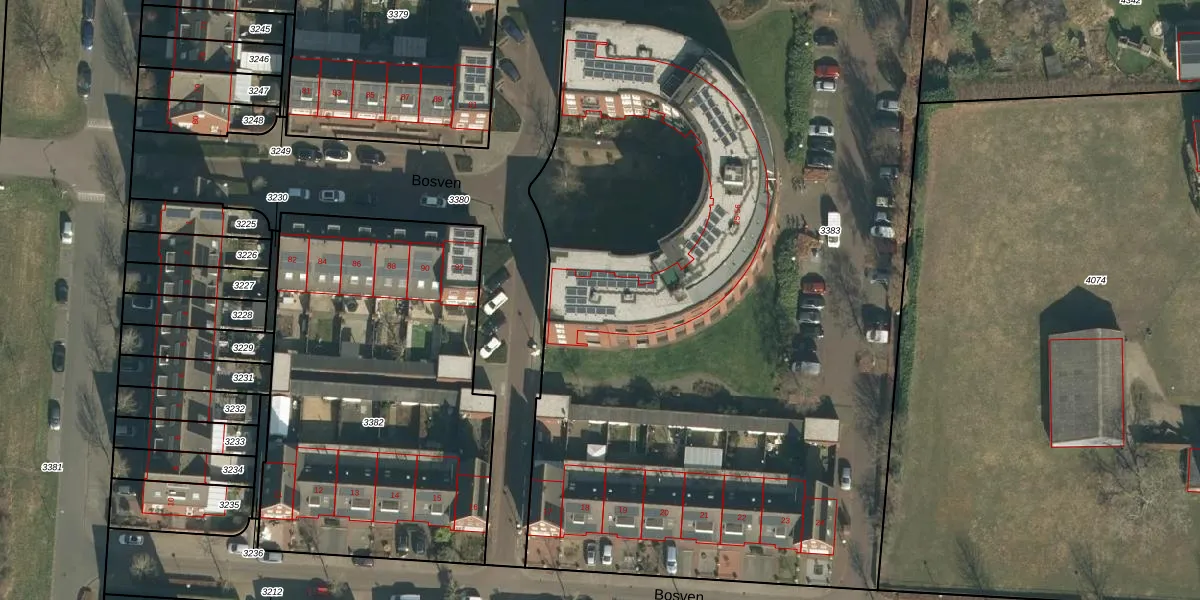 Het perceel waarop Bosven 43 staat heeft een oppervlakte van 7536 m². Dit is een zeer groot perceel. De perceeloppervlakte wordt geregistreerd door het Kadaster. Gedetailleerde informatie over de maten van dit perceel kunt u vinden in het rapport Kadastrale kaart met maatvoering van Bosven 43.