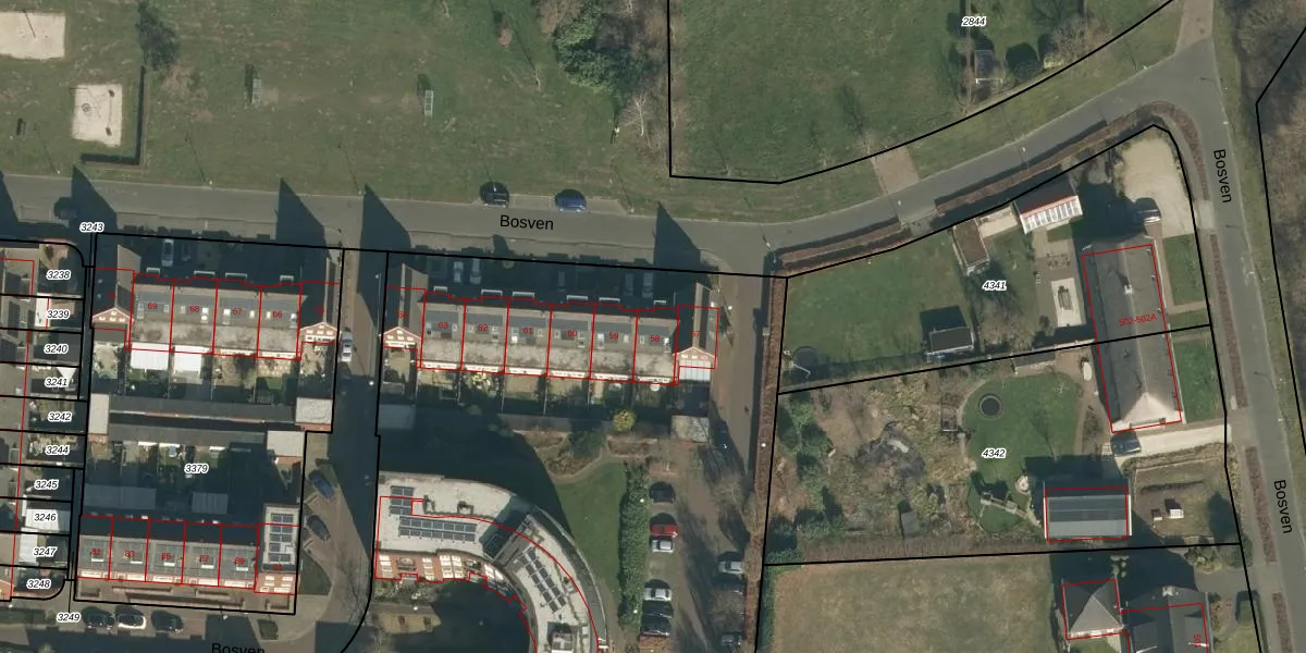 Het perceel waarop Bosven 58 staat heeft een oppervlakte van 7536 m². Dit is een zeer groot perceel. De perceeloppervlakte wordt geregistreerd door het Kadaster. Gedetailleerde informatie over de maten van dit perceel kunt u vinden in het rapport Kadastrale kaart met maatvoering van Bosven 58.
