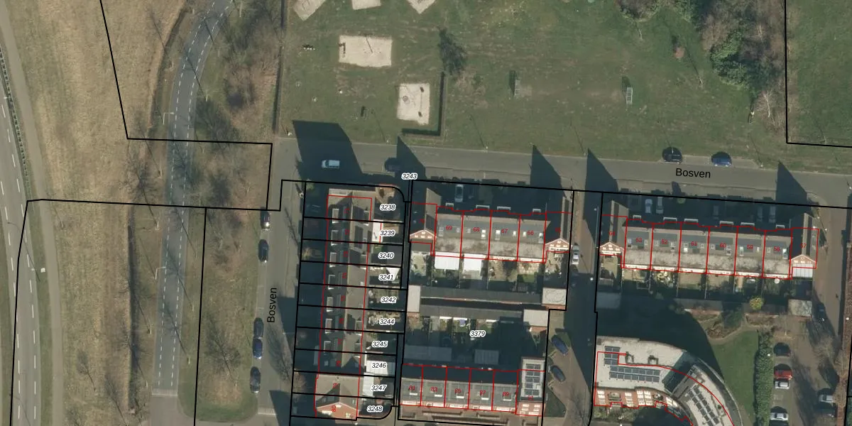 Bosven 70 is gelegen op kadastraal perceel VHL00L3379. Deze kadastrale aanduiding is uniek en wordt gebruikt door het Kadaster om eigendomsrechten en andere zakelijke rechten vast te leggen. Het perceel maakt onderdeel uit van de kadastrale gemeente Veghel.
