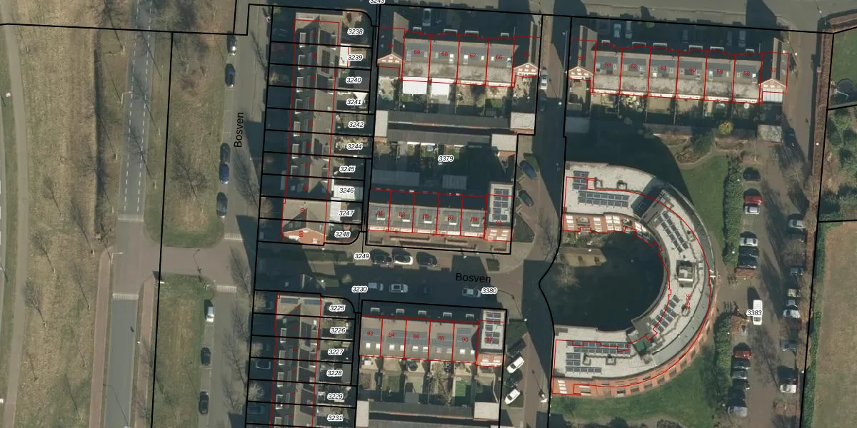 Het perceel waarop Bosven 85 staat heeft een oppervlakte van 2012 m². Dit is een zeer groot perceel. De perceeloppervlakte wordt geregistreerd door het Kadaster. Gedetailleerde informatie over de maten van dit perceel kunt u vinden in het rapport Kadastrale kaart met maatvoering van Bosven 85.