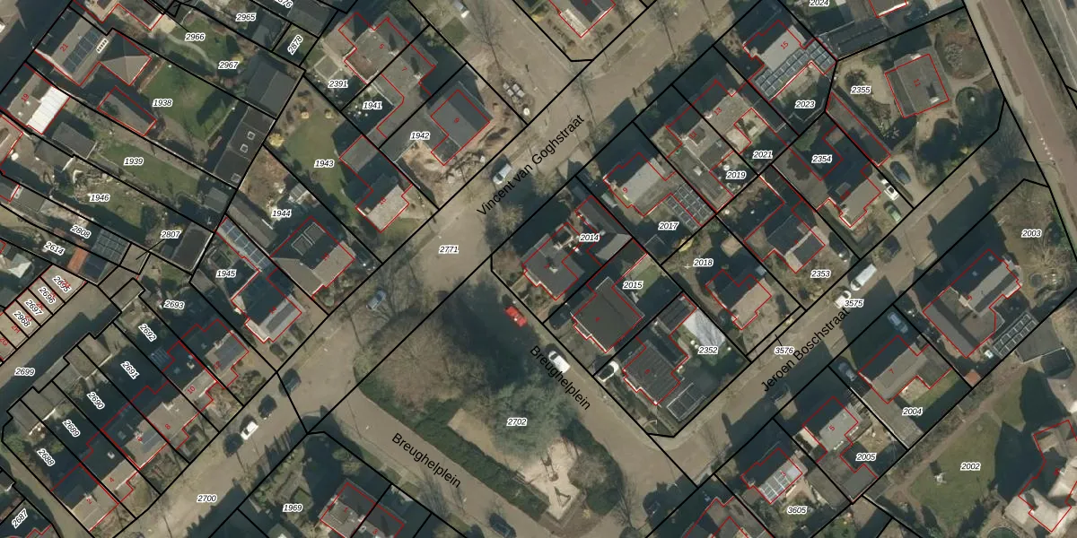 Breughelplein 2 is gelegen op kadastraal perceel VHL00G2014. Deze kadastrale aanduiding is uniek en wordt gebruikt door het Kadaster om eigendomsrechten en andere zakelijke rechten vast te leggen. Het perceel maakt onderdeel uit van de kadastrale gemeente Veghel.