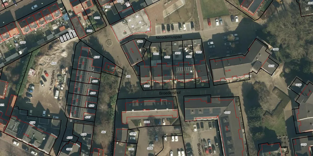 Broedershof 46 is gelegen op kadastraal perceel VHL00K3221. Deze kadastrale aanduiding is uniek en wordt gebruikt door het Kadaster om eigendomsrechten en andere zakelijke rechten vast te leggen. Het perceel maakt onderdeel uit van de kadastrale gemeente Veghel.