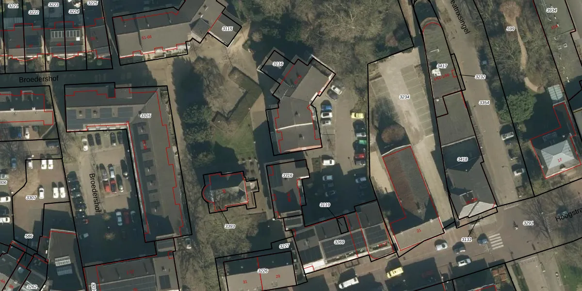 Het perceel waarop Broedershof 77 staat heeft een oppervlakte van 550 m². Dit is een groot perceel. De perceeloppervlakte wordt geregistreerd door het Kadaster. Gedetailleerde informatie over de maten van dit perceel kunt u vinden in het rapport Kadastrale kaart met maatvoering van Broedershof 77.