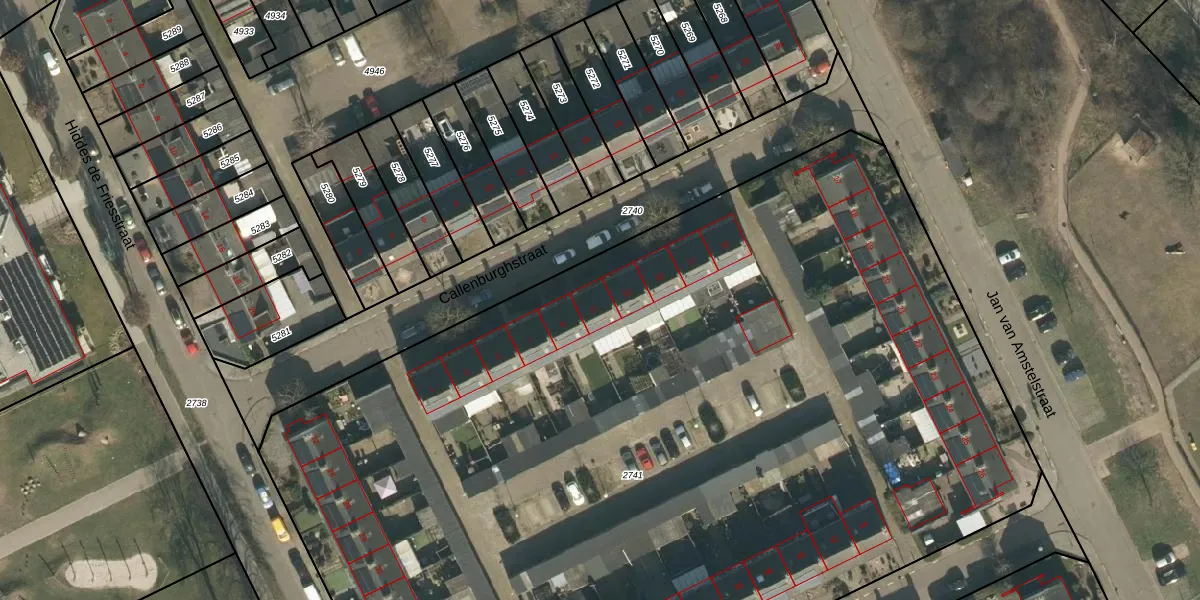 Het perceel waarop Callenburghstraat 11 staat heeft een oppervlakte van 7960 m². Dit is een zeer groot perceel. De perceeloppervlakte wordt geregistreerd door het Kadaster. Gedetailleerde informatie over de maten van dit perceel kunt u vinden in het rapport Kadastrale kaart met maatvoering van Callenburghstraat 11.