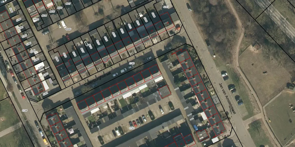Het perceel waarop Callenburghstraat 17 staat heeft een oppervlakte van 7960 m². Dit is een zeer groot perceel. De perceeloppervlakte wordt geregistreerd door het Kadaster. Gedetailleerde informatie over de maten van dit perceel kunt u vinden in het rapport Kadastrale kaart met maatvoering van Callenburghstraat 17.
