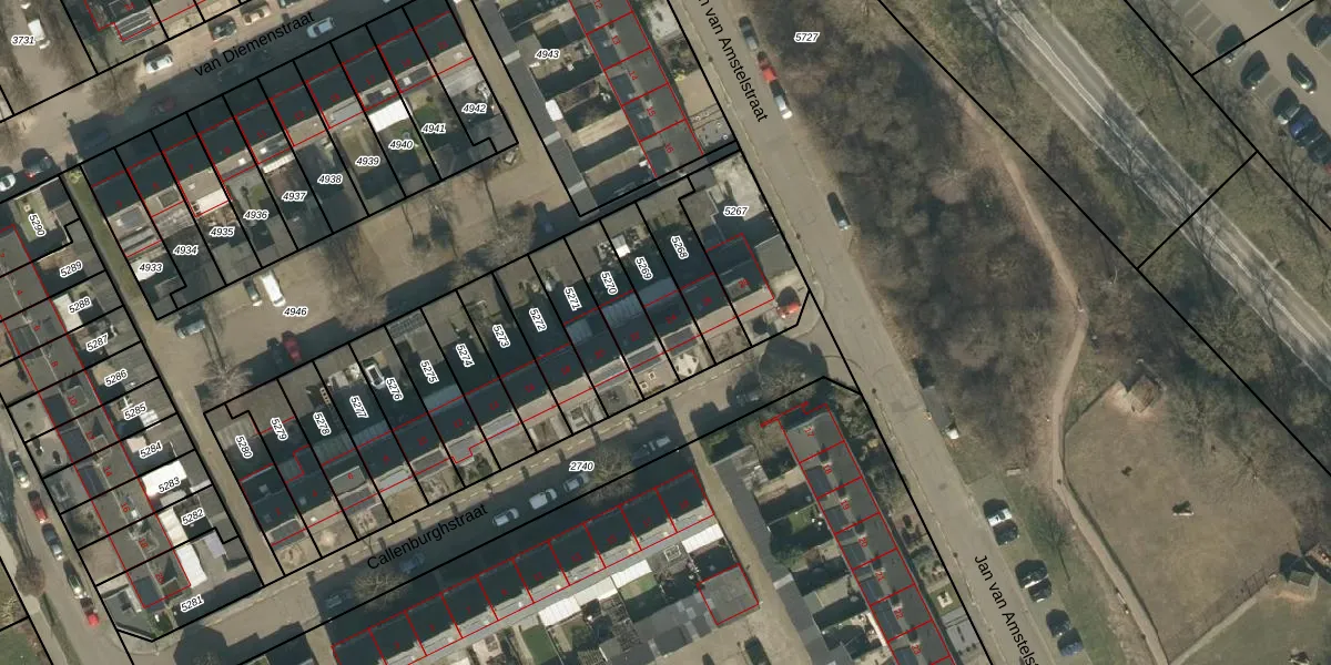 Het perceel waarop Callenburghstraat 24 staat heeft een oppervlakte van 164 m². Dit is een middelgroot perceel. De perceeloppervlakte wordt geregistreerd door het Kadaster. Gedetailleerde informatie over de maten van dit perceel kunt u vinden in het rapport Kadastrale kaart met maatvoering van Callenburghstraat 24.