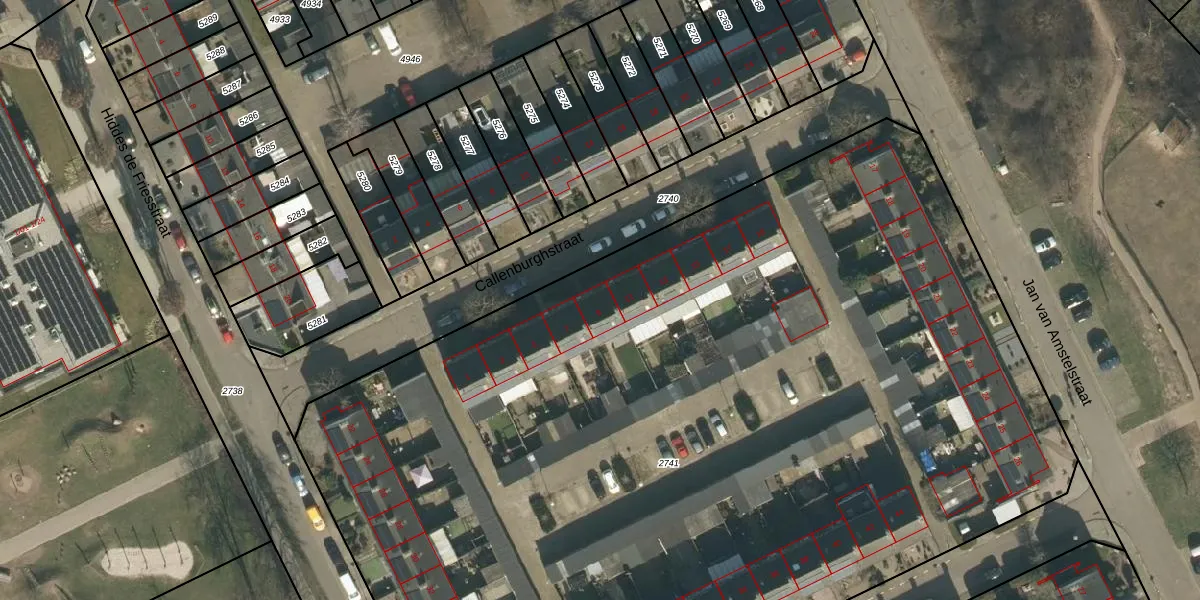 Het perceel waarop Callenburghstraat 9 staat heeft een oppervlakte van 7960 m². Dit is een zeer groot perceel. De perceeloppervlakte wordt geregistreerd door het Kadaster. Gedetailleerde informatie over de maten van dit perceel kunt u vinden in het rapport Kadastrale kaart met maatvoering van Callenburghstraat 9.