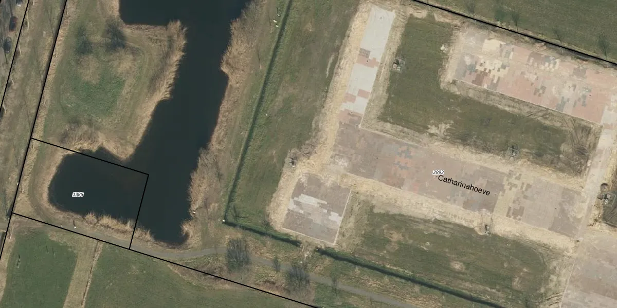 Het perceel waarop Catharinahoeve 15 staat heeft een oppervlakte van 2,5 ha. Dit is een zeer groot perceel. De perceeloppervlakte wordt geregistreerd door het Kadaster. Gedetailleerde informatie over de maten van dit perceel kunt u vinden in het rapport Kadastrale kaart met maatvoering van Catharinahoeve 15.