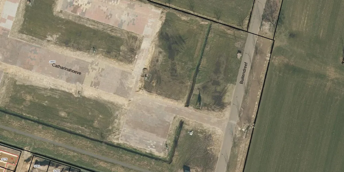 Het perceel waarop Catharinahoeve 42 staat heeft een oppervlakte van 2,5 ha. Dit is een zeer groot perceel. De perceeloppervlakte wordt geregistreerd door het Kadaster. Gedetailleerde informatie over de maten van dit perceel kunt u vinden in het rapport Kadastrale kaart met maatvoering van Catharinahoeve 42.