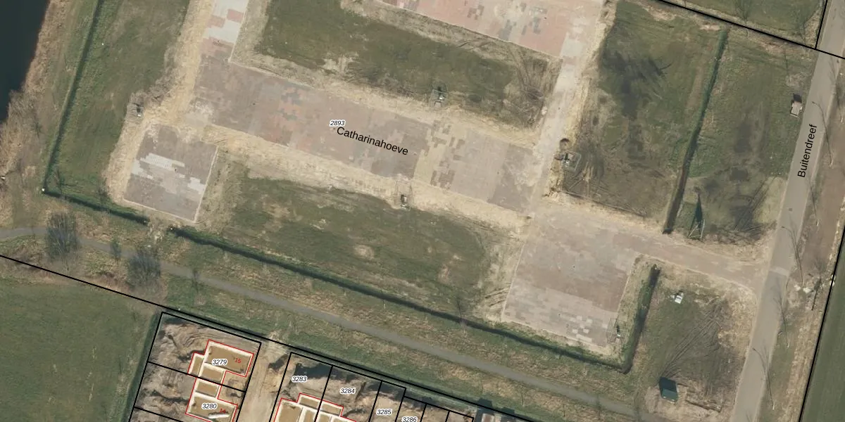 Het perceel waarop Catharinahoeve 5 staat heeft een oppervlakte van 2,5 ha. Dit is een zeer groot perceel. De perceeloppervlakte wordt geregistreerd door het Kadaster. Gedetailleerde informatie over de maten van dit perceel kunt u vinden in het rapport Kadastrale kaart met maatvoering van Catharinahoeve 5.