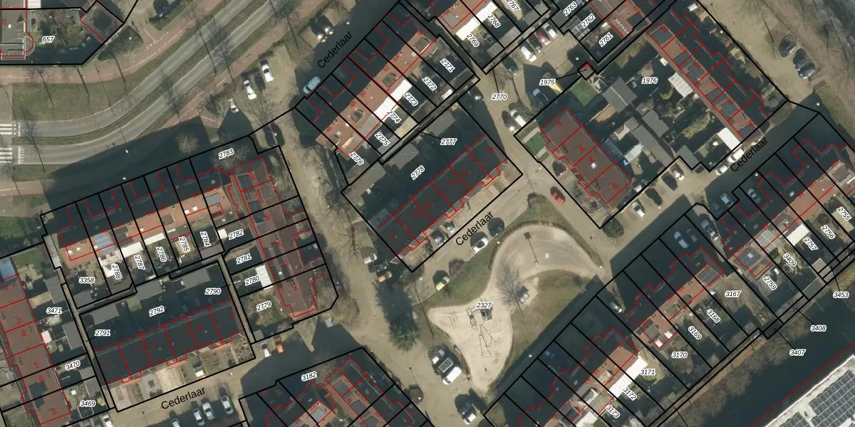 Het perceel waarop Cederlaar 82 staat heeft een oppervlakte van 825 m². Dit is een groot perceel. De perceeloppervlakte wordt geregistreerd door het Kadaster. Gedetailleerde informatie over de maten van dit perceel kunt u vinden in het rapport Kadastrale kaart met maatvoering van Cederlaar 82.