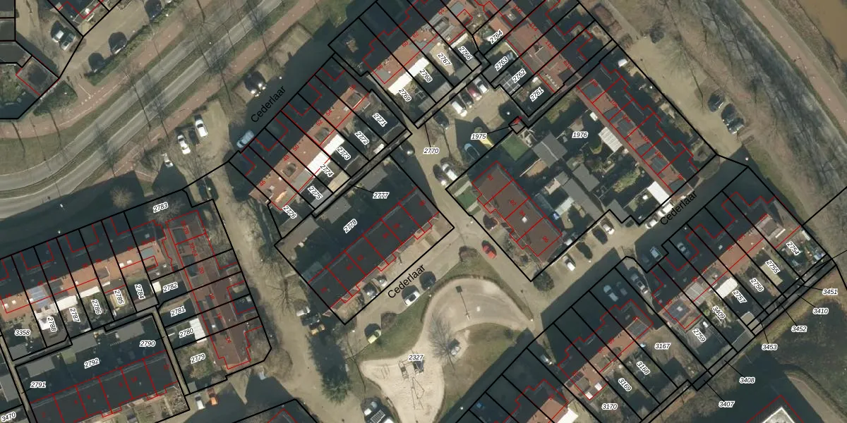 Het perceel waarop Cederlaar 88 staat heeft een oppervlakte van 825 m². Dit is een groot perceel. De perceeloppervlakte wordt geregistreerd door het Kadaster. Gedetailleerde informatie over de maten van dit perceel kunt u vinden in het rapport Kadastrale kaart met maatvoering van Cederlaar 88.