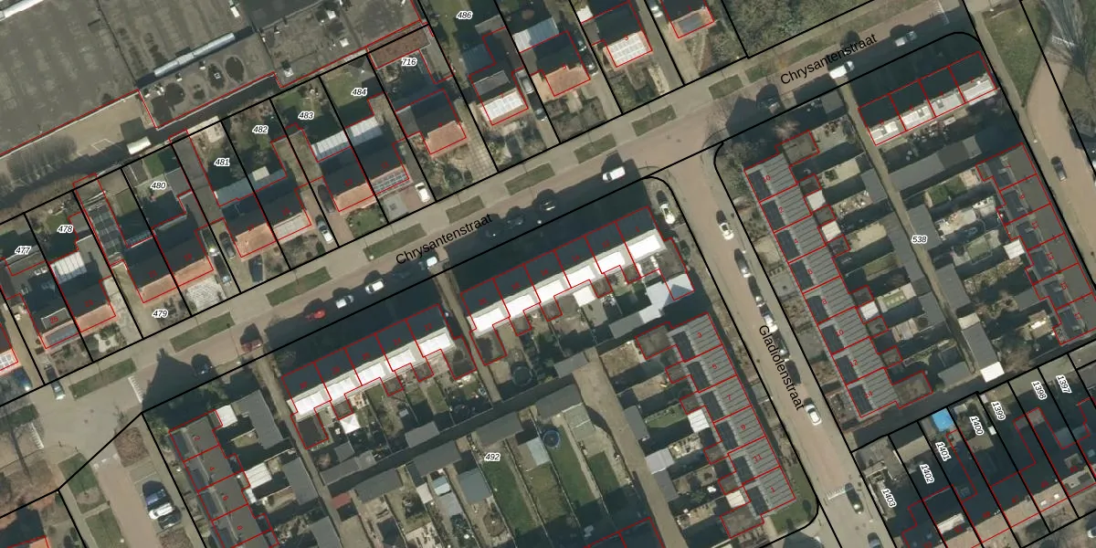 Het perceel waarop Chrysantenstraat 16 staat heeft een oppervlakte van 7337 m². Dit is een zeer groot perceel. De perceeloppervlakte wordt geregistreerd door het Kadaster. Gedetailleerde informatie over de maten van dit perceel kunt u vinden in het rapport Kadastrale kaart met maatvoering van Chrysantenstraat 16.