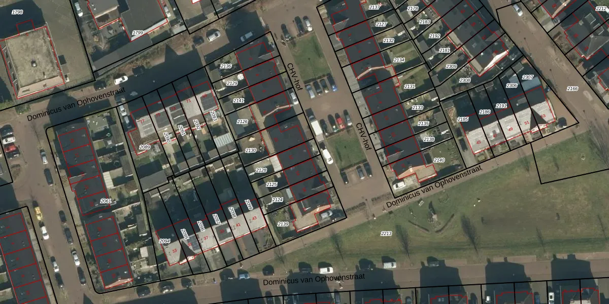 CHV-hof 12 is gelegen op kadastraal perceel VHL00H2128. Deze kadastrale aanduiding is uniek en wordt gebruikt door het Kadaster om eigendomsrechten en andere zakelijke rechten vast te leggen. Het perceel maakt onderdeel uit van de kadastrale gemeente Veghel.