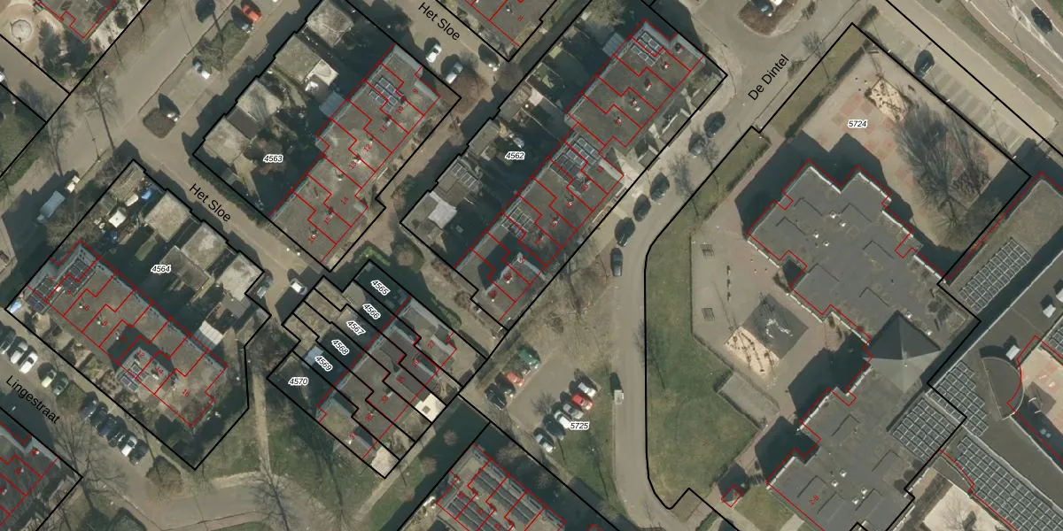 Het perceel waarop De Dintel 21 staat heeft een oppervlakte van 1787 m². Dit is een zeer groot perceel. De perceeloppervlakte wordt geregistreerd door het Kadaster. Gedetailleerde informatie over de maten van dit perceel kunt u vinden in het rapport Kadastrale kaart met maatvoering van De Dintel 21.