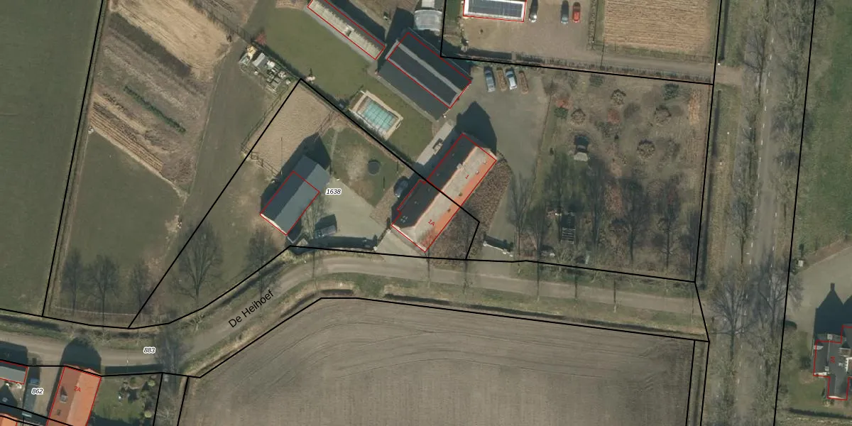 De Heihoef 1-A is gelegen op kadastraal perceel VHL00P1638. Deze kadastrale aanduiding is uniek en wordt gebruikt door het Kadaster om eigendomsrechten en andere zakelijke rechten vast te leggen. Het perceel maakt onderdeel uit van de kadastrale gemeente Veghel.