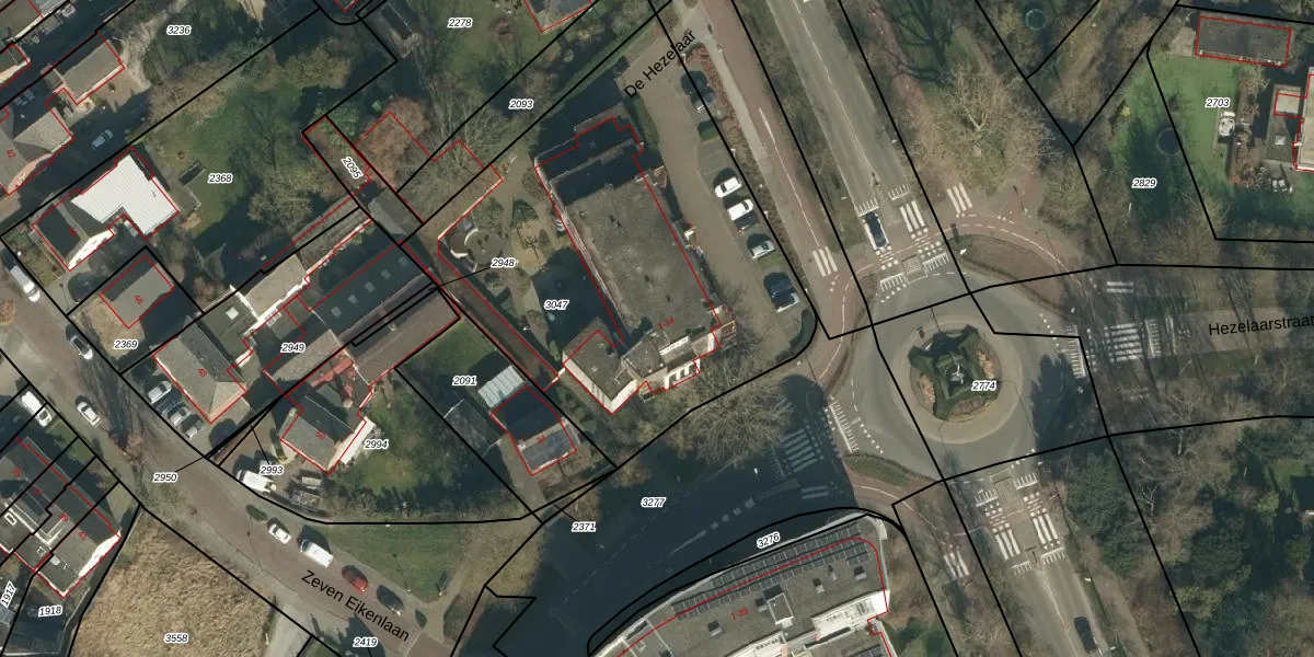 Het perceel waarop De Hezelaar 21 staat heeft een oppervlakte van 2288 m². Dit is een zeer groot perceel. De perceeloppervlakte wordt geregistreerd door het Kadaster. Gedetailleerde informatie over de maten van dit perceel kunt u vinden in het rapport Kadastrale kaart met maatvoering van De Hezelaar 21.
