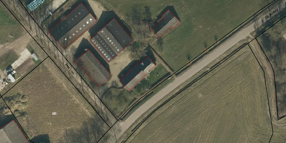 Het perceel waarop De Kuilen 12 staat heeft een oppervlakte van 9,0 ha. Dit is een zeer groot perceel. De perceeloppervlakte wordt geregistreerd door het Kadaster. Gedetailleerde informatie over de maten van dit perceel kunt u vinden in het rapport Kadastrale kaart met maatvoering van De Kuilen 12.