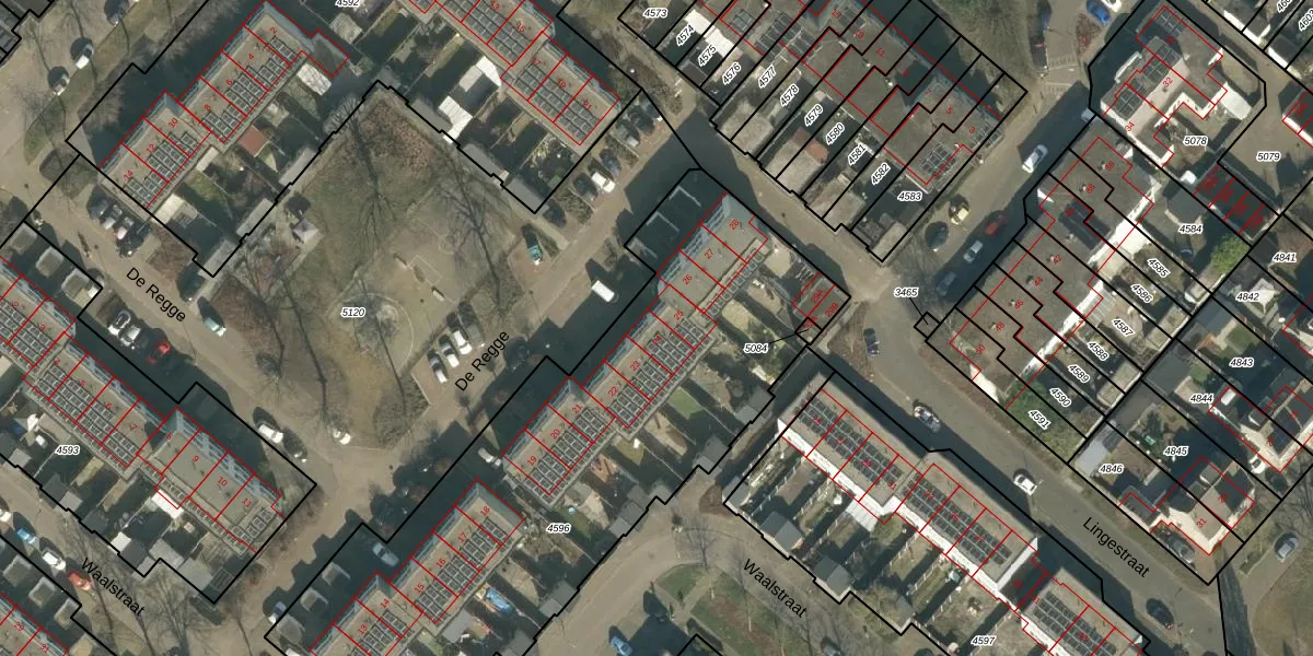 De Regge 24 is gelegen op kadastraal perceel VHL00D4596. Deze kadastrale aanduiding is uniek en wordt gebruikt door het Kadaster om eigendomsrechten en andere zakelijke rechten vast te leggen. Het perceel maakt onderdeel uit van de kadastrale gemeente Veghel.