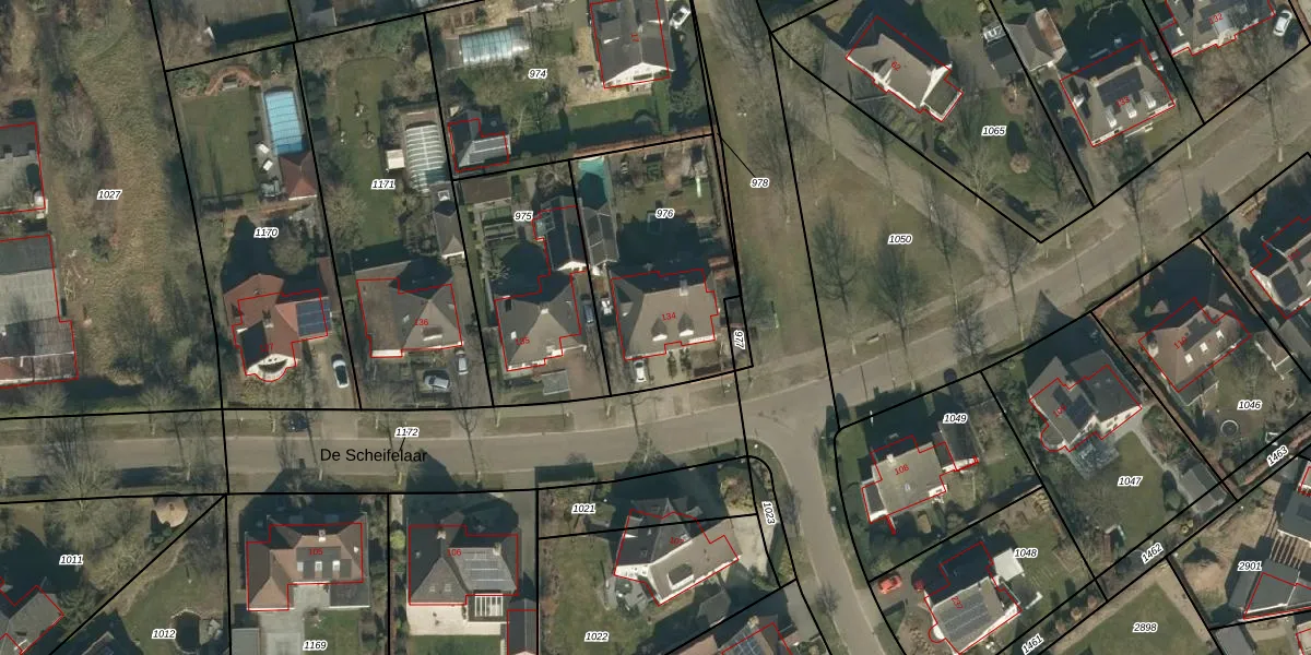 Het perceel waarop De Scheifelaar 134 staat heeft een oppervlakte van 782 m². Dit is een groot perceel. De perceeloppervlakte wordt geregistreerd door het Kadaster. Gedetailleerde informatie over de maten van dit perceel kunt u vinden in het rapport Kadastrale kaart met maatvoering van De Scheifelaar 134.