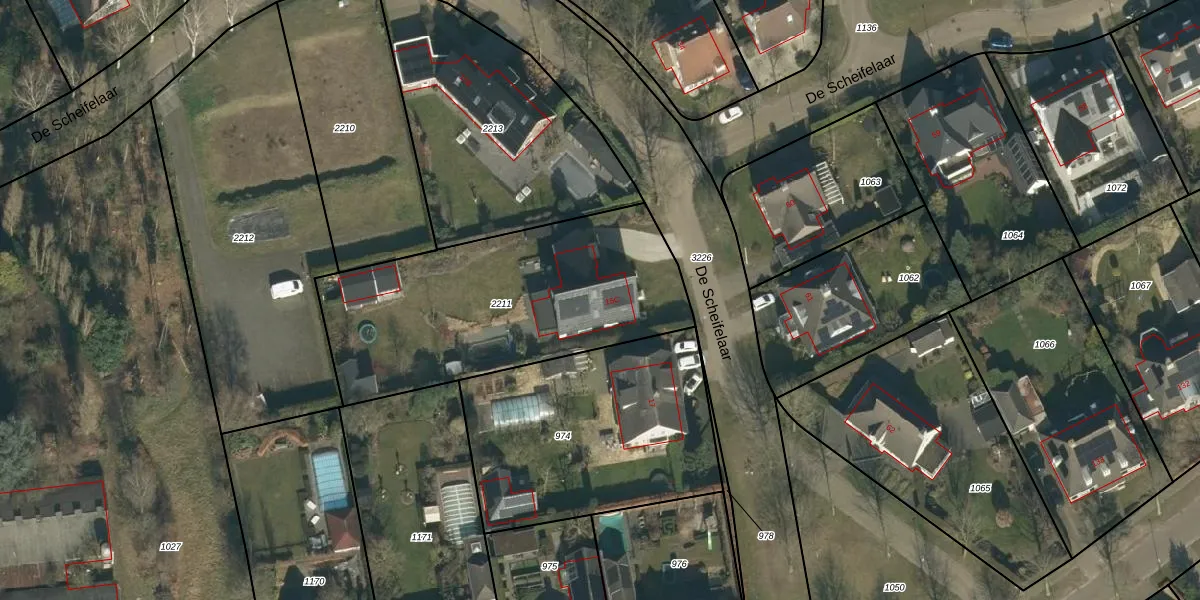 Het perceel waarop De Scheifelaar 15-C staat heeft een oppervlakte van 1297 m². Dit is een zeer groot perceel. De perceeloppervlakte wordt geregistreerd door het Kadaster. Gedetailleerde informatie over de maten van dit perceel kunt u vinden in het rapport Kadastrale kaart met maatvoering van De Scheifelaar 15-C.