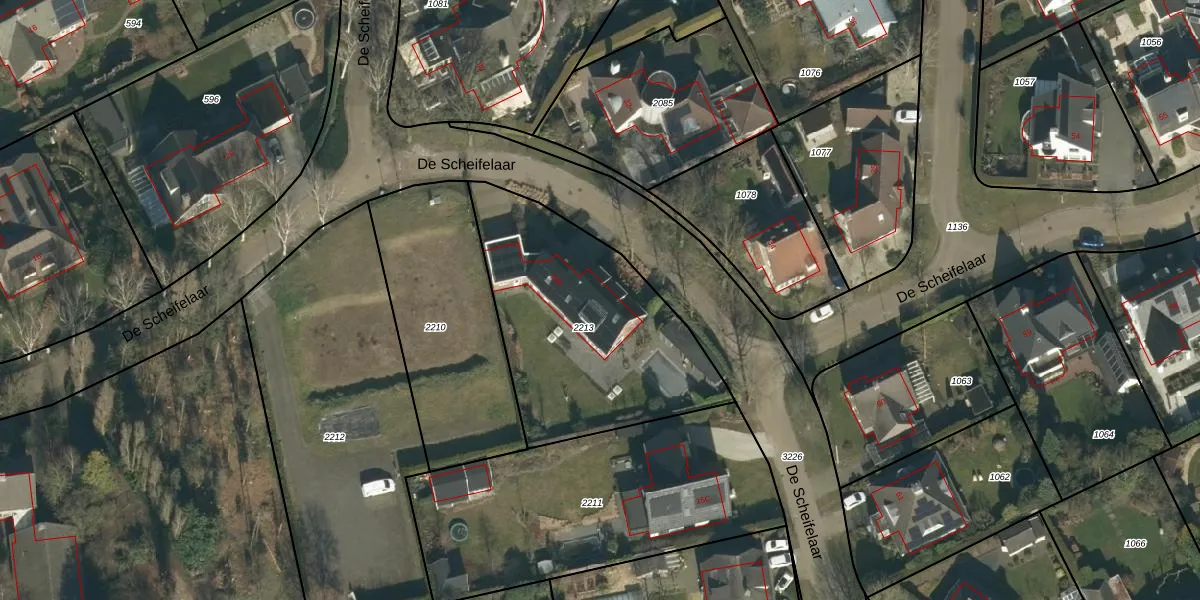 Het perceel waarop De Scheifelaar 15-B staat heeft een oppervlakte van 1066 m². Dit is een zeer groot perceel. De perceeloppervlakte wordt geregistreerd door het Kadaster. Gedetailleerde informatie over de maten van dit perceel kunt u vinden in het rapport Kadastrale kaart met maatvoering van De Scheifelaar 15-B.