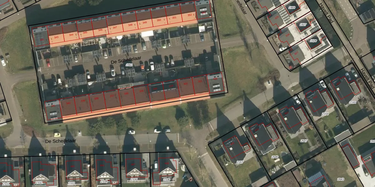 Het perceel waarop De Scheifelaar 332 staat heeft een oppervlakte van 5235 m². Dit is een zeer groot perceel. De perceeloppervlakte wordt geregistreerd door het Kadaster. Gedetailleerde informatie over de maten van dit perceel kunt u vinden in het rapport Kadastrale kaart met maatvoering van De Scheifelaar 332.