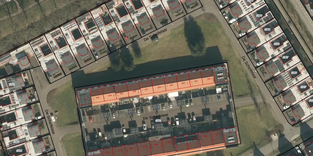 Het perceel waarop De Scheifelaar 348 staat heeft een oppervlakte van 5235 m². Dit is een zeer groot perceel. De perceeloppervlakte wordt geregistreerd door het Kadaster. Gedetailleerde informatie over de maten van dit perceel kunt u vinden in het rapport Kadastrale kaart met maatvoering van De Scheifelaar 348.