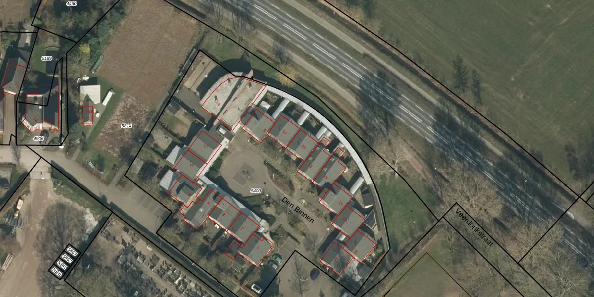 Den Binnen 11 is gelegen op kadastraal perceel VHL00F5400. Deze kadastrale aanduiding is uniek en wordt gebruikt door het Kadaster om eigendomsrechten en andere zakelijke rechten vast te leggen. Het perceel maakt onderdeel uit van de kadastrale gemeente Veghel.