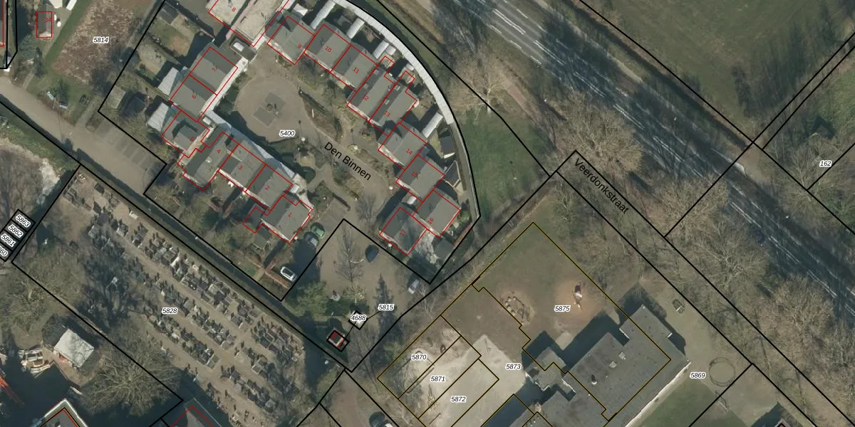 Den Binnen 16 is gelegen op kadastraal perceel VHL00F5400. Deze kadastrale aanduiding is uniek en wordt gebruikt door het Kadaster om eigendomsrechten en andere zakelijke rechten vast te leggen. Het perceel maakt onderdeel uit van de kadastrale gemeente Veghel.