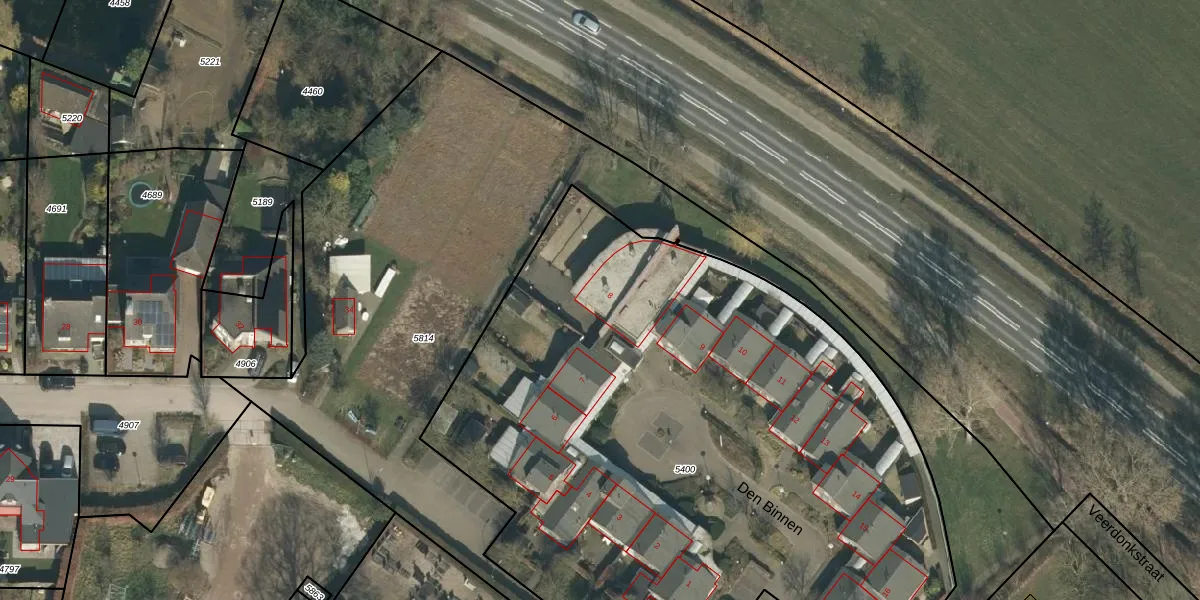 Den Binnen 8 is gelegen op kadastraal perceel VHL00F5400. Deze kadastrale aanduiding is uniek en wordt gebruikt door het Kadaster om eigendomsrechten en andere zakelijke rechten vast te leggen. Het perceel maakt onderdeel uit van de kadastrale gemeente Veghel.