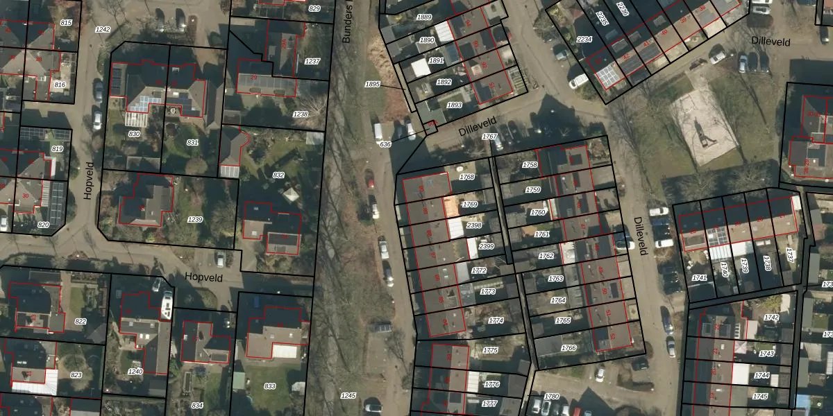 Het perceel waarop Dilleveld 89 staat heeft een oppervlakte van 131 m². Dit is een middelgroot perceel. De perceeloppervlakte wordt geregistreerd door het Kadaster. Gedetailleerde informatie over de maten van dit perceel kunt u vinden in het rapport Kadastrale kaart met maatvoering van Dilleveld 89.