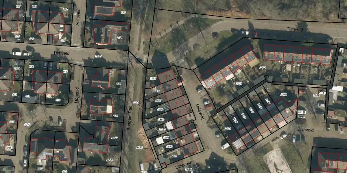Gebruik de zoekbalk of klik op een perceel voor informatie over de adressen binnen dit perceel.