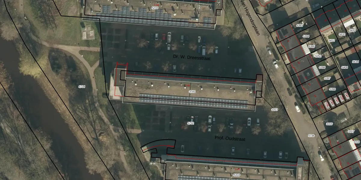 Het perceel waarop Dr. W. Dreesstraat 21 staat heeft een oppervlakte van 1075 m². Dit is een zeer groot perceel. De perceeloppervlakte wordt geregistreerd door het Kadaster. Gedetailleerde informatie over de maten van dit perceel kunt u vinden in het rapport Kadastrale kaart met maatvoering van Dr. W. Dreesstraat 21.
