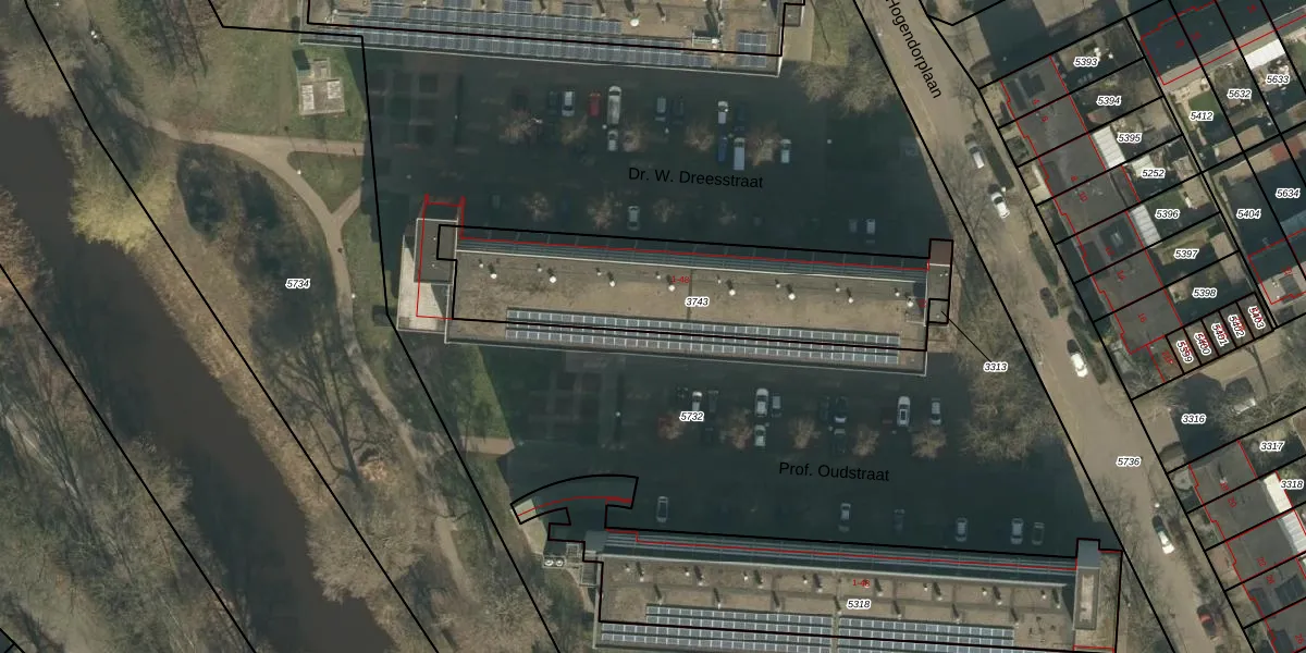 Het perceel waarop Dr. W. Dreesstraat 45 staat heeft een oppervlakte van 1075 m². Dit is een zeer groot perceel. De perceeloppervlakte wordt geregistreerd door het Kadaster. Gedetailleerde informatie over de maten van dit perceel kunt u vinden in het rapport Kadastrale kaart met maatvoering van Dr. W. Dreesstraat 45.