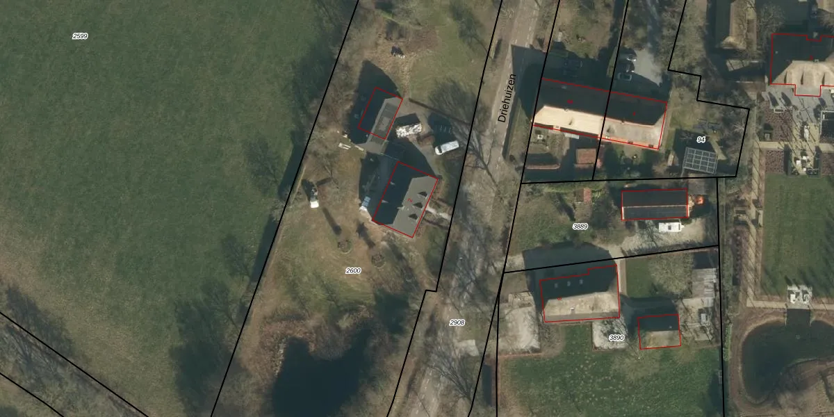 Driehuizen 2 is gelegen op kadastraal perceel VHL00L2600. Deze kadastrale aanduiding is uniek en wordt gebruikt door het Kadaster om eigendomsrechten en andere zakelijke rechten vast te leggen. Het perceel maakt onderdeel uit van de kadastrale gemeente Veghel.