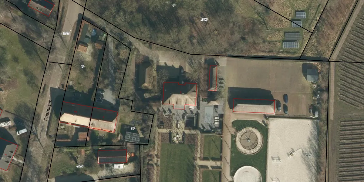 Het perceel waarop Driehuizen 5 staat heeft een oppervlakte van 1,6 ha. Dit is een zeer groot perceel. De perceeloppervlakte wordt geregistreerd door het Kadaster. Gedetailleerde informatie over de maten van dit perceel kunt u vinden in het rapport Kadastrale kaart met maatvoering van Driehuizen 5.