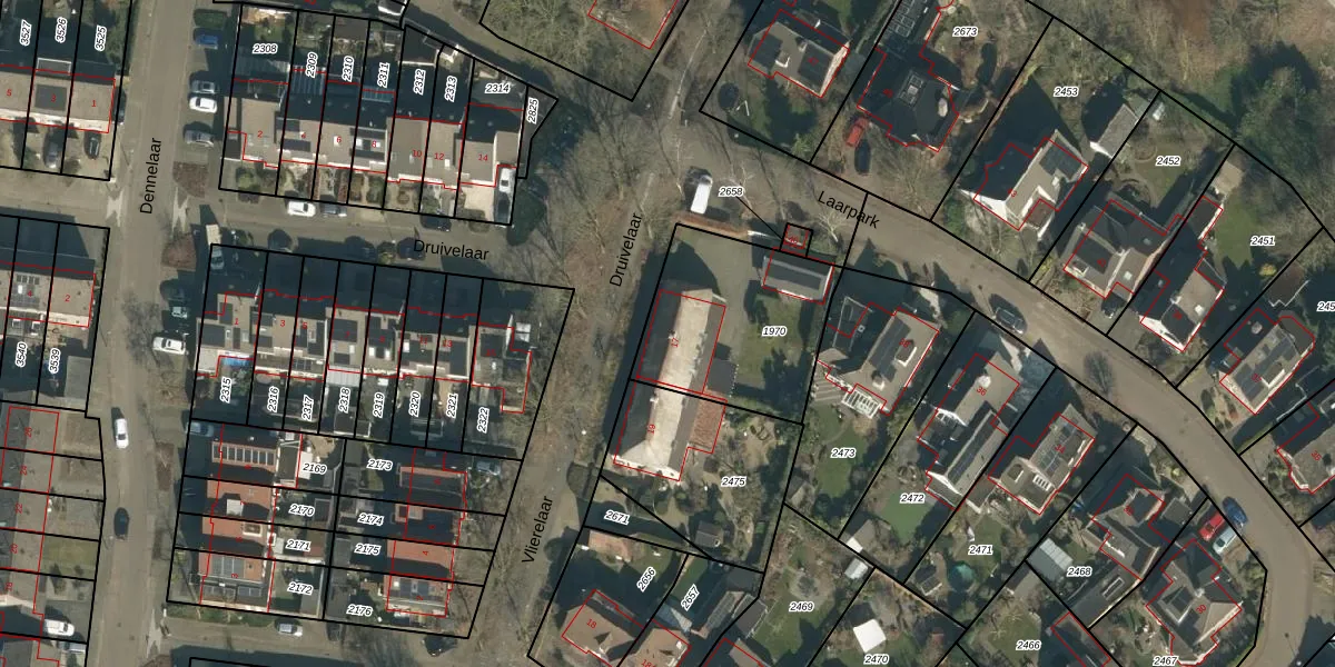 Druivelaar 17 is gelegen op kadastraal perceel VHL00K1970. Deze kadastrale aanduiding is uniek en wordt gebruikt door het Kadaster om eigendomsrechten en andere zakelijke rechten vast te leggen. Het perceel maakt onderdeel uit van de kadastrale gemeente Veghel.