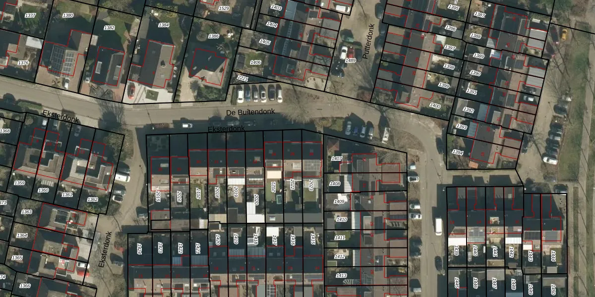 Het perceel waarop Eksterdonk 25 staat heeft een oppervlakte van 199 m². Dit is een middelgroot perceel. De perceeloppervlakte wordt geregistreerd door het Kadaster. Gedetailleerde informatie over de maten van dit perceel kunt u vinden in het rapport Kadastrale kaart met maatvoering van Eksterdonk 25.