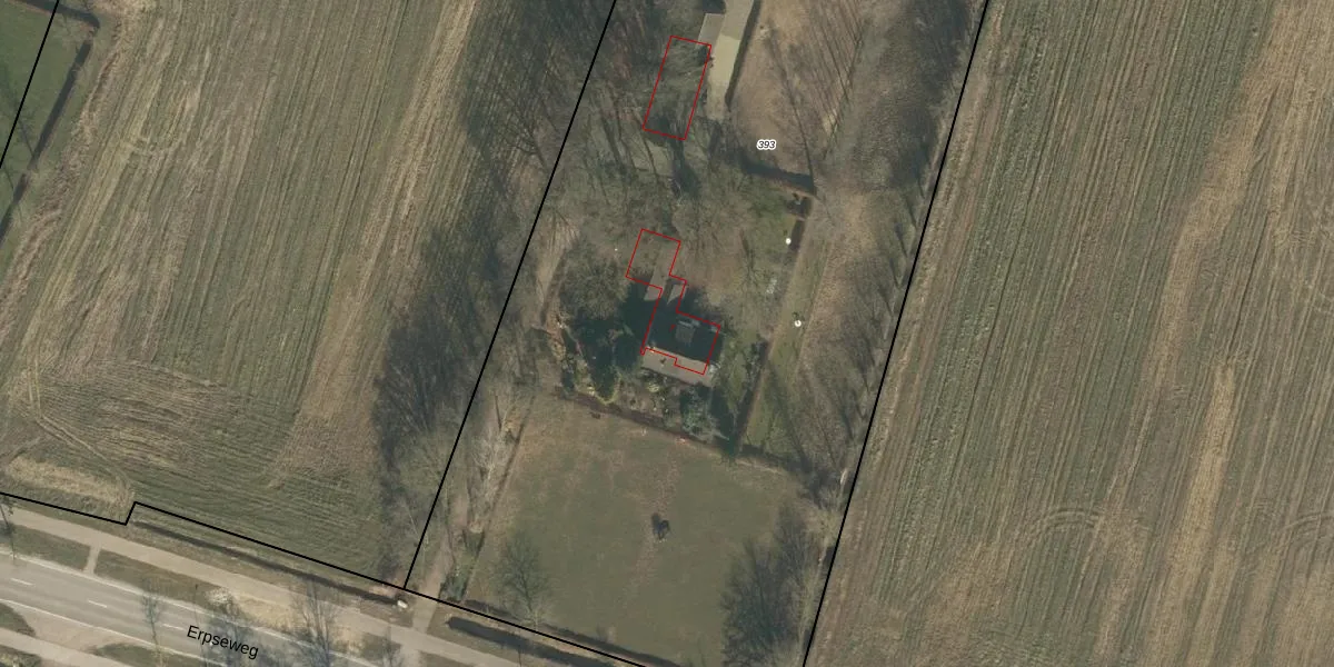 Het perceel waarop Erpseweg 7 staat heeft een oppervlakte van 6800 m². Dit is een zeer groot perceel. De perceeloppervlakte wordt geregistreerd door het Kadaster. Gedetailleerde informatie over de maten van dit perceel kunt u vinden in het rapport Kadastrale kaart met maatvoering van Erpseweg 7.