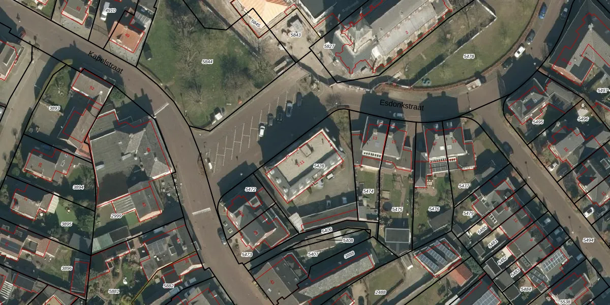 Het perceel waarop Esdonkstraat 1 staat heeft een oppervlakte van 866 m². Dit is een groot perceel. De perceeloppervlakte wordt geregistreerd door het Kadaster. Gedetailleerde informatie over de maten van dit perceel kunt u vinden in het rapport Kadastrale kaart met maatvoering van Esdonkstraat 1.