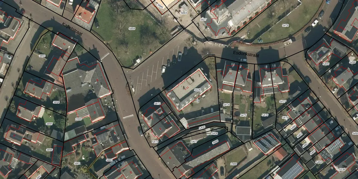 Het perceel waarop Esdonkstraat 11 staat heeft een oppervlakte van 866 m². Dit is een groot perceel. De perceeloppervlakte wordt geregistreerd door het Kadaster. Gedetailleerde informatie over de maten van dit perceel kunt u vinden in het rapport Kadastrale kaart met maatvoering van Esdonkstraat 11.